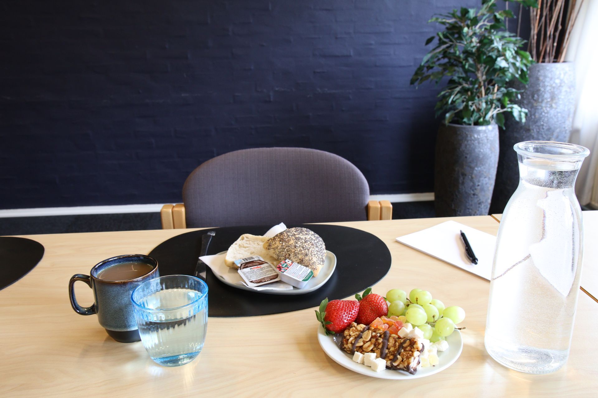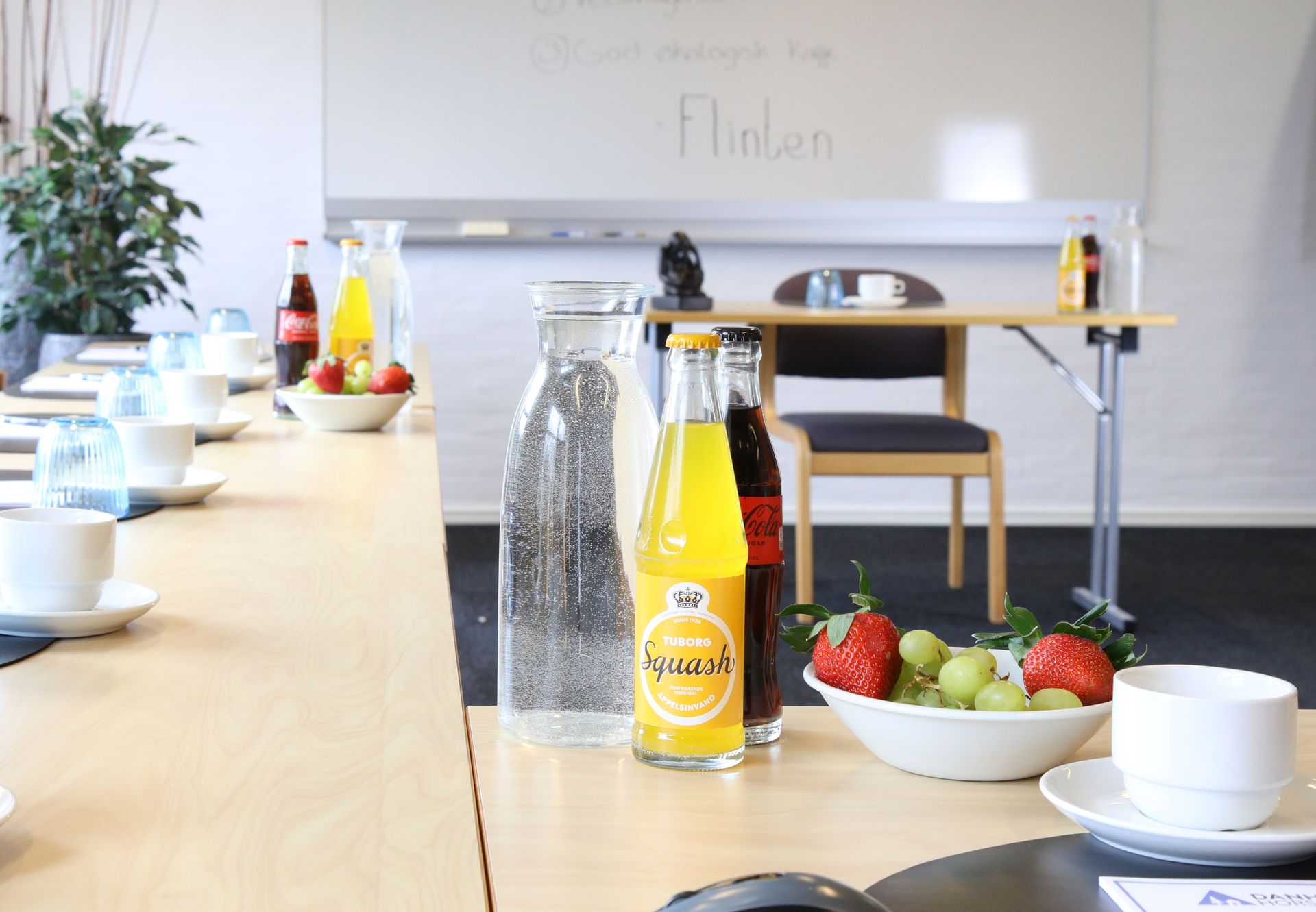 Forplejningen er omhyggeligt tilberedt fra bunden af vores køkken, hvor vi fokuserer på gode råvarer og en hjemmelavet smag, der giver en oplevelse ud over det sædvanlige. Dertil har I adgang til kaffe, te og vand ad libitum hele dagen, så I kan holde fokus og forblive friske.